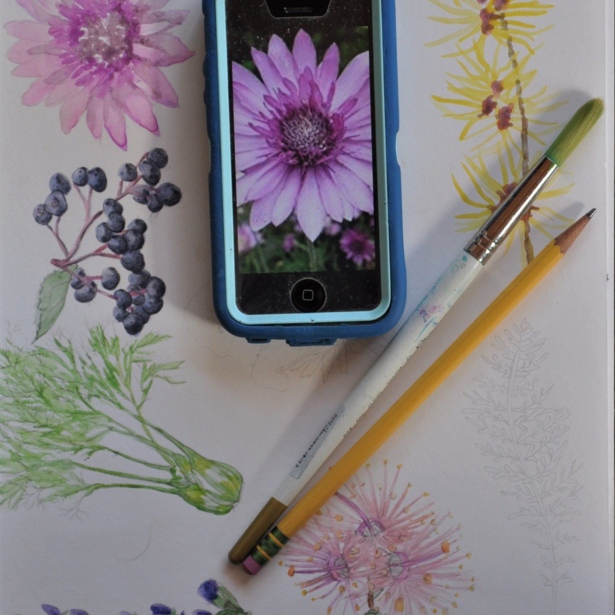 Check out my Graphic Design process above… I make 2D drawings and paintings from photo or real life references are then render them on Photoshop into illustrations/ PNG graphics. They start with pencil, then paint, pen, photograph/upload, graphic design. With the help of my younger sister, Emily, we have a few creative print-on-demand sites for you to check out.